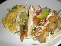 then drove forever to the area just out of the eastern part of the city. I really wanted to try this new Latin cuisine at Paladar. Paladar has two locations, one in Cleveland and one in Maryland. They host a large menu of various Latin flavors, spanning form the Caribbean to Brazil, have a rum bar, and a GF menu. We both selected our meals form the GF menu. To start, we had the garlic mango guacamole. As an antree, I chose tacos; Nick enjoyed a traditional Brazilian stew. My tacos were perfect. I chose to leave off the aioli sauce (I find it messy and distracting), and enjoy the flavors of the shaved potato circles, cabbag